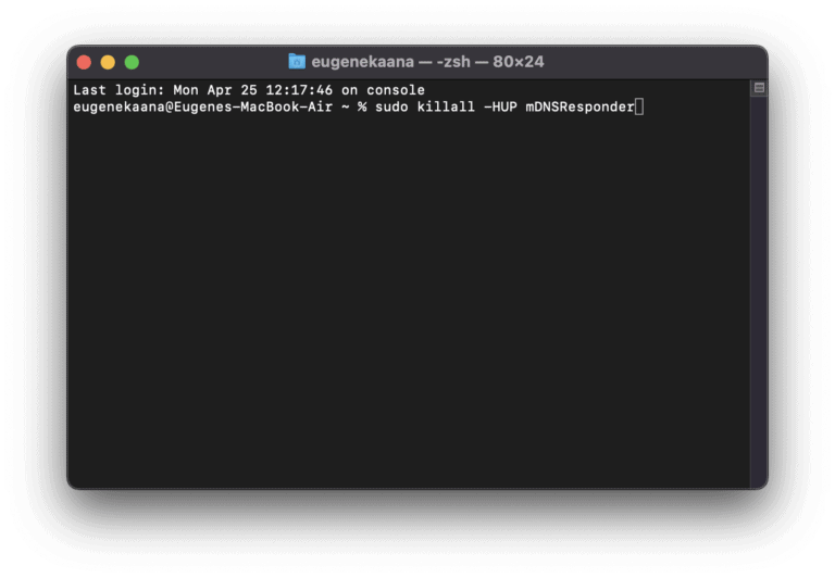 - يجب أن تشاهد رسالة تقول: "توقف mDNSResponder.”