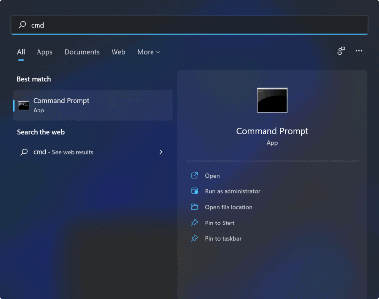 - افتح قائمة "ابدأ" واكتب "كمد" في مربع البحث. اضغط على Enter لفتحموجه الأوامر.