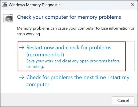 الإصلاح 8 – تشغيل تشخيص ذاكرة Windows