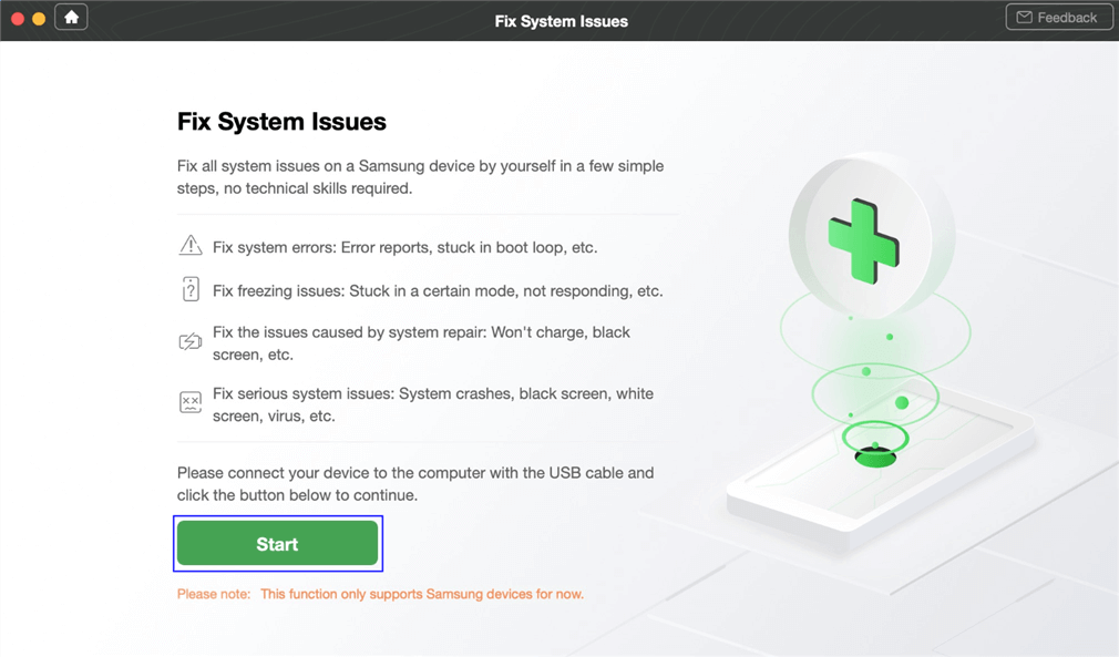 الخطوة 2.قم بتوصيل هاتف Android الخاص بك بالكمبيوتر وانقر علىيبدأزر للمتابعة.