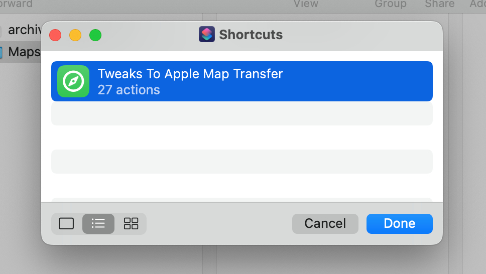 أثناء عملك على هذا، سيتم تحميل نافذة العنصر التالي في الخلفية، حيث ستحتوي على رقم فقط. أغلق النافذة وستفتح نافذة أخرى، تظهر لك اسم الموقع التالي. من هنا يمكنك تكرار العملية حتى تصبح جميع مواقع خرائط Google المثبتة في خرائط Apple.