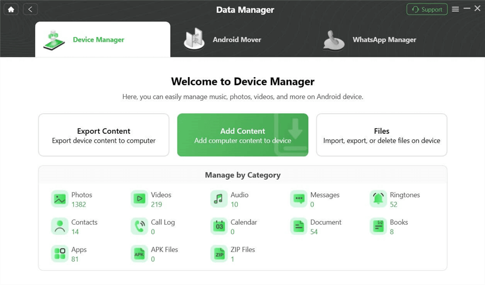 الخطوة 1. قم بتنزيل DroidKit وتشغيله مجانًا على جهاز الكمبيوتر الخاص بك. ثم حددمدير البياناتوثممدير الجهازوضع.