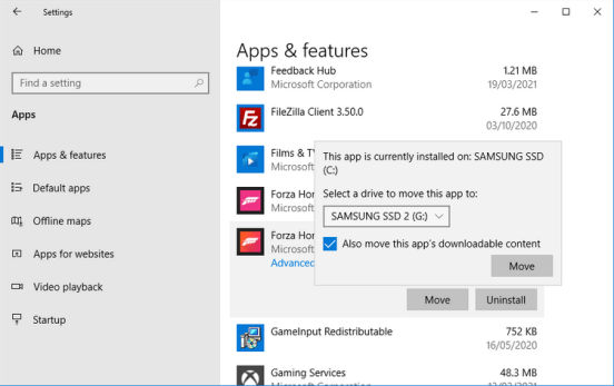 الخطوة 4.حدد البرامج المثبتة التي تريد نقلها، ثم انقر فوق "يتحركزر ". ثم اختر محرك الأقراص الوجهة واضغط على "يتحرك"زر مرة أخرى.