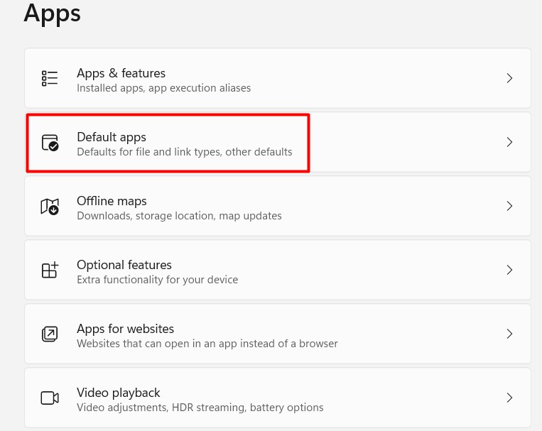 الخطوة 3:انقر على "تطبيقات"واختر"التطبيقات الافتراضية" في الجزء الأيسر من النافذة.