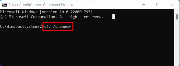 الخطوة 2:اكتب الأمر "SFC /SCANNOW"في موجه الأوامر واضغط على"يدخل" مفتاح.