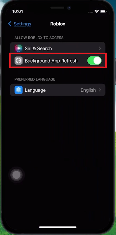 تمكين تحديث التطبيق:في إعدادات Roblox، تأكد من تشغيل خيار “Background App Refresh”.
