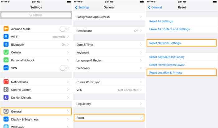في بعض الأحيان، تحدث هذه المشكلة بسبب الشبكة. يمكنك إعادة تعيينها على جهازك لإصلاحها: انتقل إلى الإعدادات > عام > قم بالتمرير لأسفل إلى إعادة تعيين > اضغط على إعادة ضبط إعدادات الشبكة.