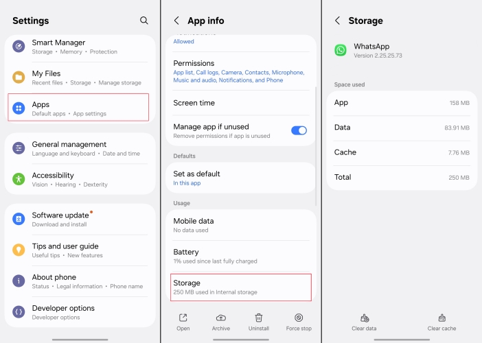 الطريقة الرابعة: مسح ذاكرة التخزين المؤقت للبيانات وإعادة تشغيل WhatsApp