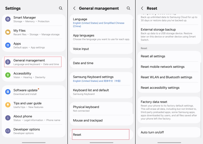 الخطوة 2.مقبضإعادة تعيين > إعادة ضبط إعدادات WLAN وBluetooth.