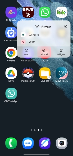 الخطوة 1.اضغط على الواتس اب ثم اضغطقم بإزالة التطبيق.