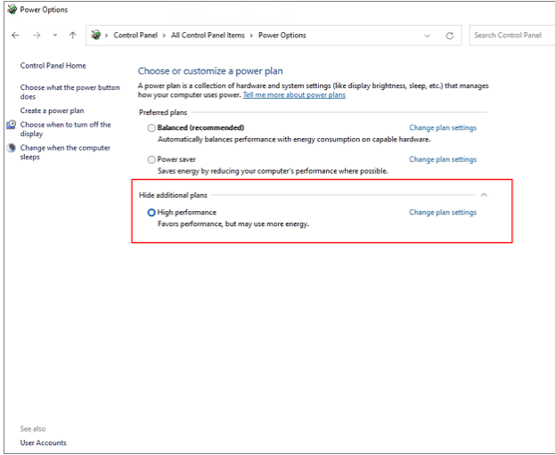 الطريقة الرابعة: تمكين وضع الأداء العالي في Power Plan