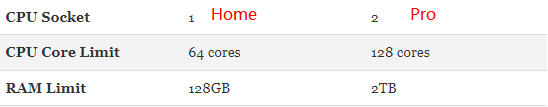 نرفق هنا قائمة مقارنة لملاحظة الاختلافات بين Windows 11 Home وPro بوضوح في وحدة المعالجة المركزية وذاكرة الوصول العشوائي.