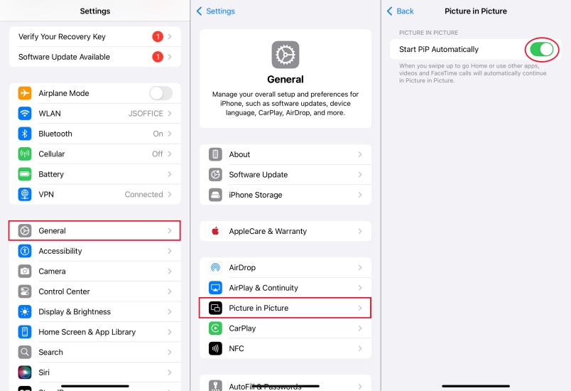 الحل 2. تمكين PiP في إعدادات iPhone