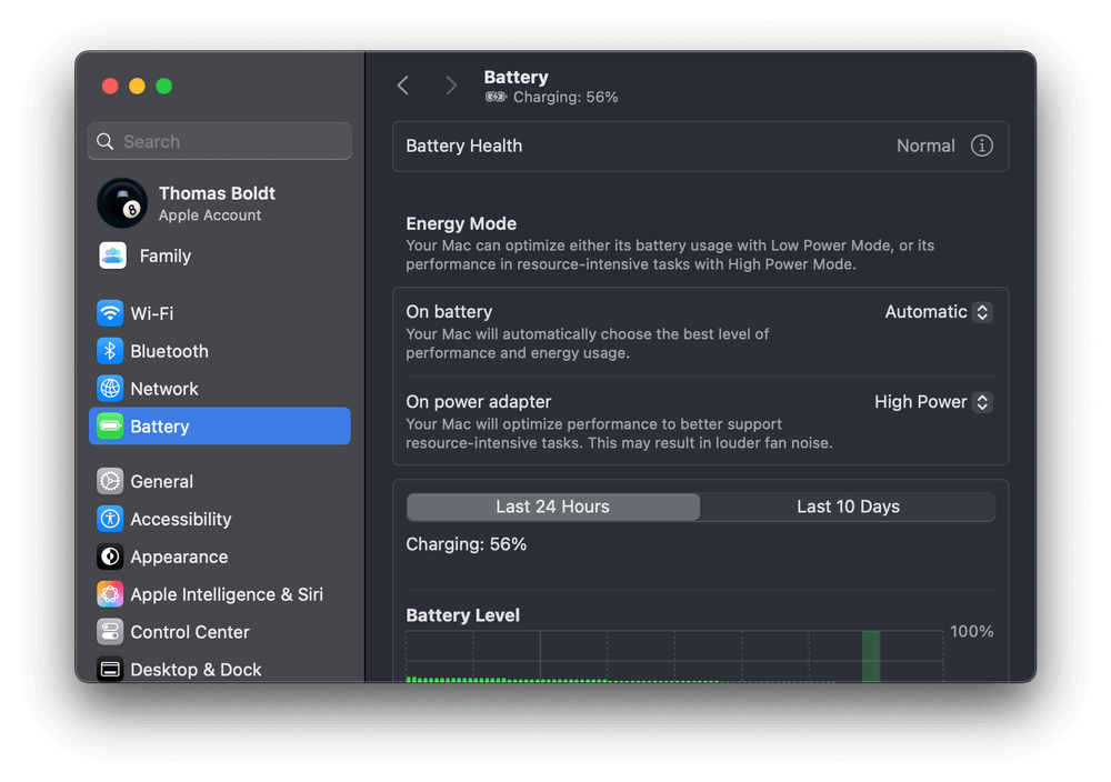 Nastavení baterie macOS