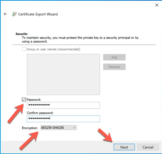 Krok 8. Zaškrtněte políčko Heslo a dvakrát zadejte heslo dle vašeho výběru pro přístup k zašifrovanému souboru. Klikněte na „Další“.