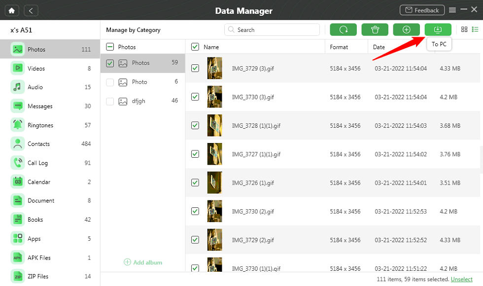 Nyní proveďte následující kroky k selektivnímu zálohování telefonu Samsung do počítače.