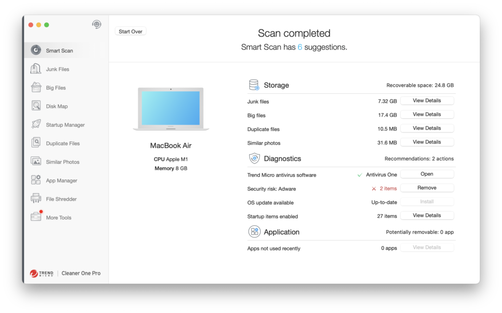 Úlohy údržby systému Mac: Provádějte základní úkoly údržby, jako je spouštění skriptů údržby, vymazání paměti RAM a oprava oprávnění k disku. Můžete použít nástroje jakoCleaner One Propro tyto úkoly.