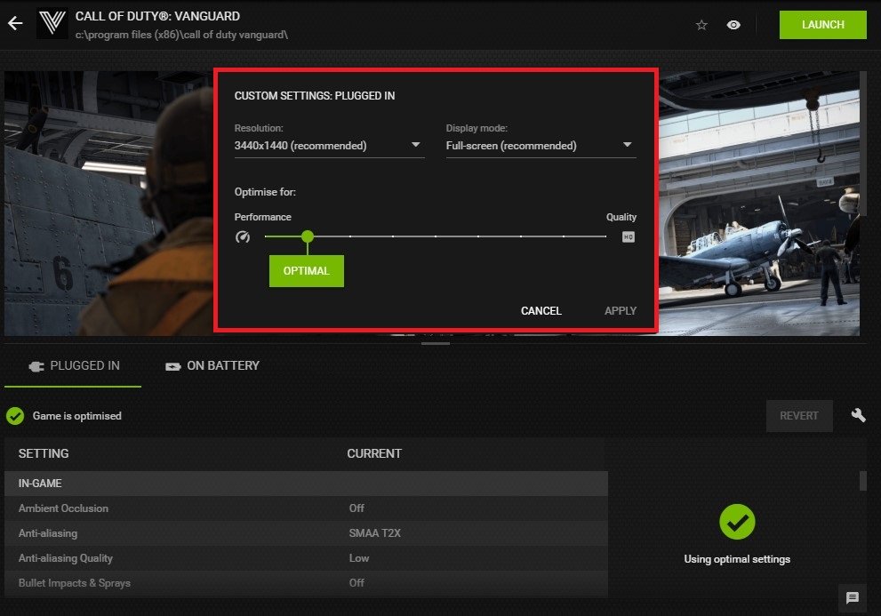 GeForce Experience > Domů > Call of Duty Vanguard