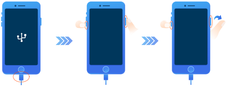 Krok 6.Uvolněte tlačítko napájení, ale držte tlačítko snížení hlasitosti dalších 10 sekund. Pokud obrazovka zůstane černá, jste v režimu DFU.