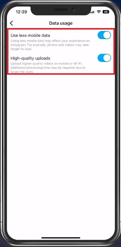 Deaktivujte nastavení Instagram Low Data