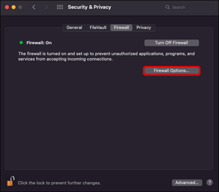Krok 2Klikněte na „Zabezpečení a soukromí“ a poté vyberte „Firewall“ a „Možnosti brány firewall“.