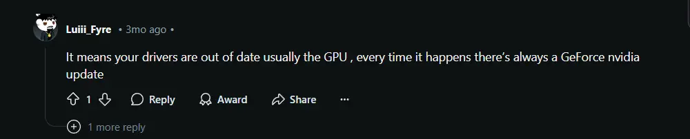 2. Zastaralý ovladač GPU: Paměť GPU je také problémem při spuštění těžké hry, jako je Fortnite na Windows. Pokud tedy máte vyhrazený GPU (zejména NVIDIA), existuje šance, že se chyba paměti objevila kvůli zastaralému ovladači. Více uživatelů to také sdílelo na fórech.