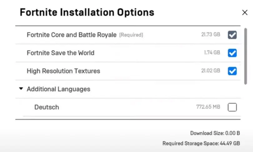 Oprava 1 – Další informace o velikosti souboru Fortnite na PC/laptopu