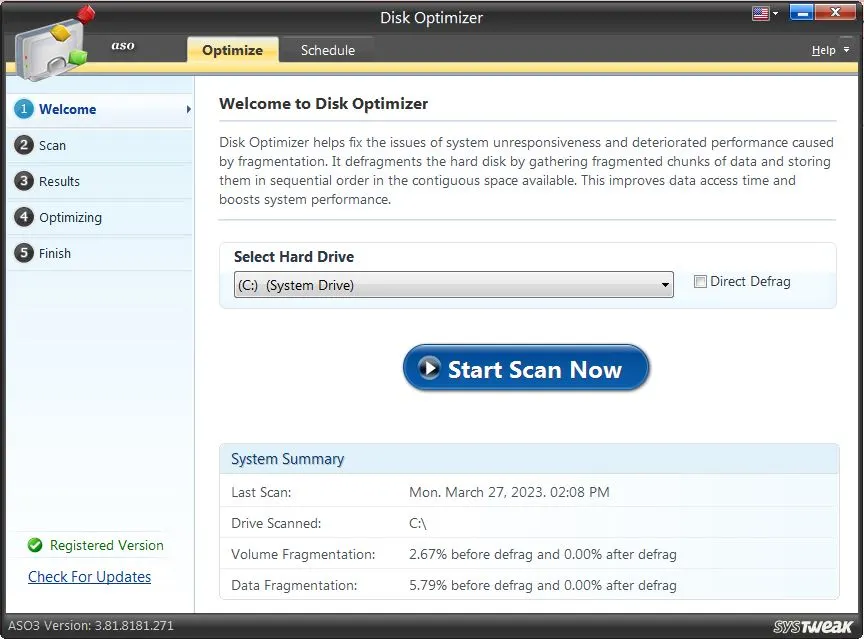 Krok 4 – Vyberte jednotku, kterou chcete optimalizovat, a klikněte na Start Scan Now.