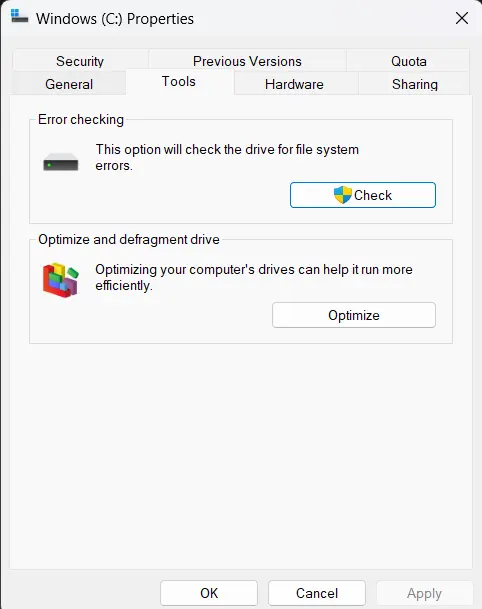 Abyste zajistili, že úložiště vašeho zařízení bude optimalizováno a nebude kvůli těmto chybám blokováno, musíte úložiště pravidelně kontrolovat, zda neobsahuje chyby. Totéž můžete provést ručně pomocí Nástroje prostřednictvím vlastností diskové jednotky nebo zvolit lepší způsob instalací pokročilého optimalizátoru systému.