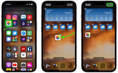 - Přesuňte kopii aplikace na požadovanou domovskou obrazovku a klepněte naHotovov pravém horním rohu obrazovky.