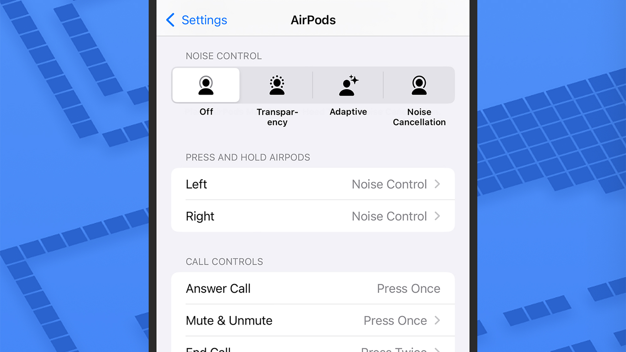 Možnosti, které zde uvidíte, budou záviset na vašem modelu AirPods. Snímek obrazovky: AppleRůzná sluchátka AirPods nabízejí různé ovládací prvky: Pokud například používáte nejnovější AirPods 4 nebo AirPods Pro 2, můžete stisknutím stopek sluchátek spustit a pozastavit přehrávání zvuku a dvojitým stisknutím přeskočit vpřed na další skladbu. Pokud přichází hovor, můžete jej přijmout stisknutím stonku.