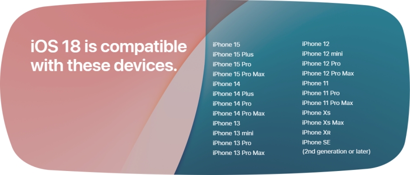Ne všechna zařízení jsou kompatibilní s iOS 18 Beta. Ujistěte se, že váš iPhone je v oficiálním seznamu podporovaných zařízení společnosti Apple, abyste zajistili, že váš iPhone může používat iOS 18 Beta. Níže je uveden oficiální seznam zařízení Apple podporovaných iOS 18.