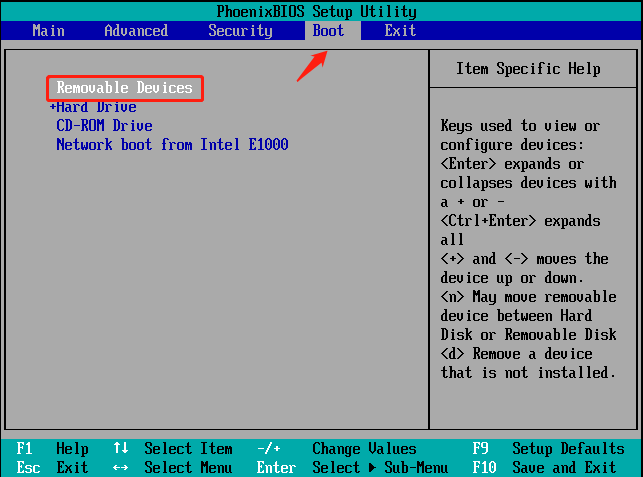 Krok 2. Z uvedených jednotek pomocí kláves se šipkami upřednostněte zařízení USB jako první spouštěcí zařízení.