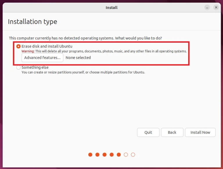 Krok 5. Vyberte preferovaný jazyk a pokračujte, dokud nenarazíte na možnost „Vymazat disk a nainstalovat Ubuntu“. Klikněte na „Instalovat nyní“.