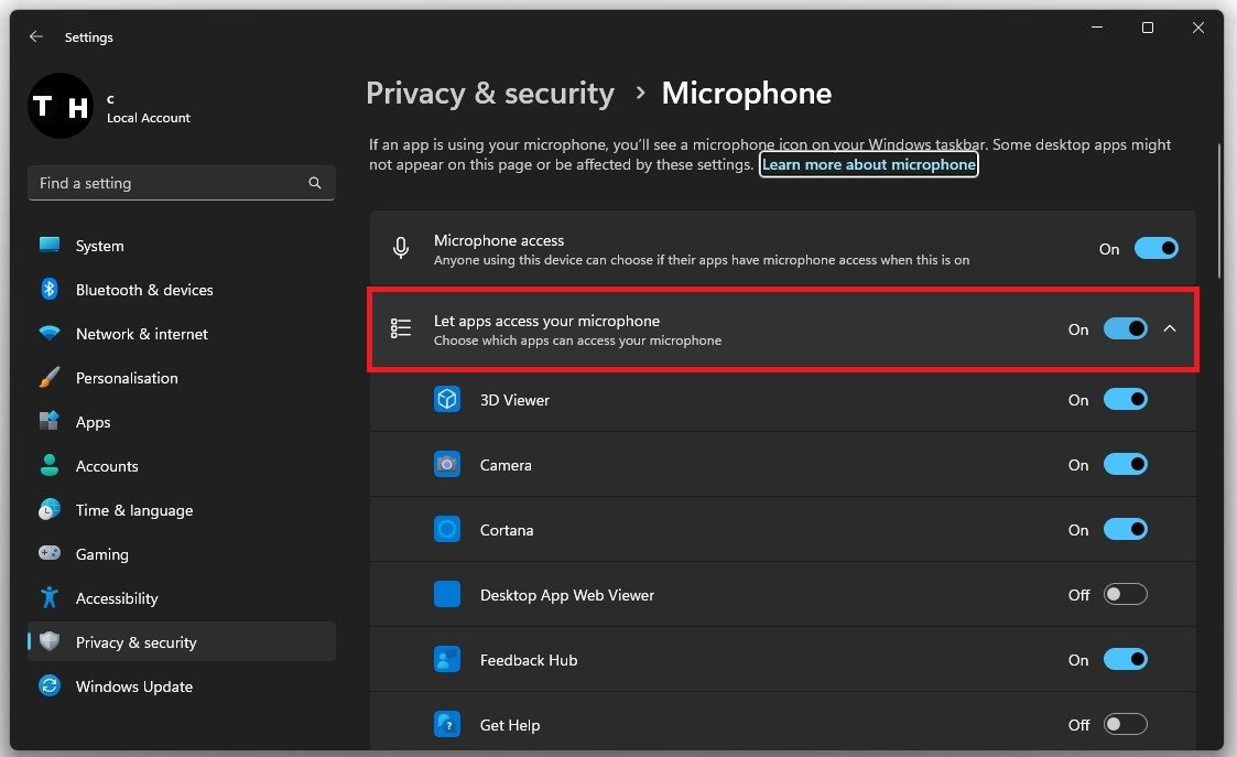 Pokud problém přetrvává, přejděte zpět do nastavení systému Windows. PodOchrana osobních údajů a zabezpečeníklikněte naMikrofonpodOprávnění aplikace.