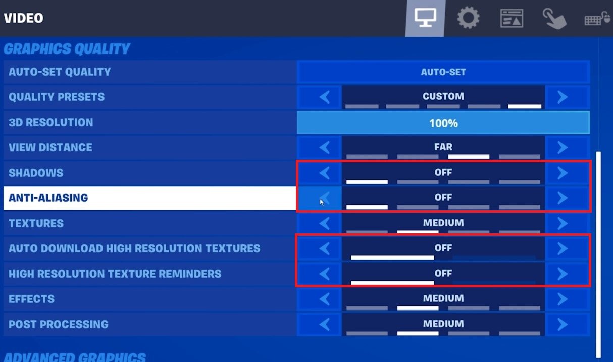 To vám umožní zakázatTextury s vysokým rozlišenímvolba. Protože jsme zakázali nastavení vysokého rozlišení ve vašem nastavení videa, nebudete je muset stahovat a používat pro Fortnite.