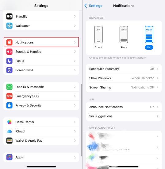 Krok 1Přejít naNastavení > Oznámení.