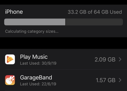 Případ 1Kategorie úložiště iPhone se nenačítají