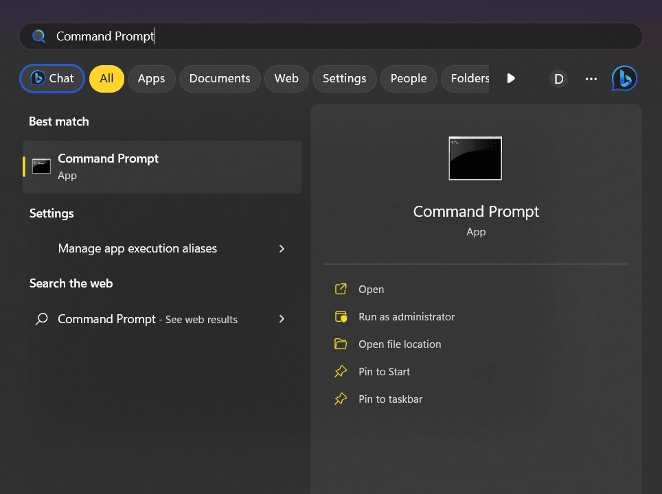Pokud se instalační program nespustí, zkuste přeinstalovat pomocí příkazového řádku otevřením příkazového řádku ve zvýšeném režimu.