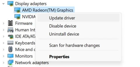 4. Klepněte pravým tlačítkem myši na grafickou kartu a vyberte Aktualizovat ovladače.