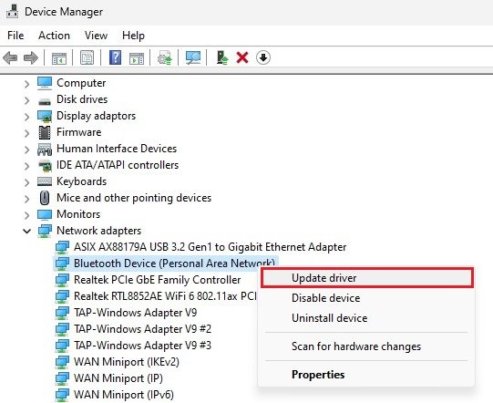 Aktualizujte ovladač síťového adaptéru