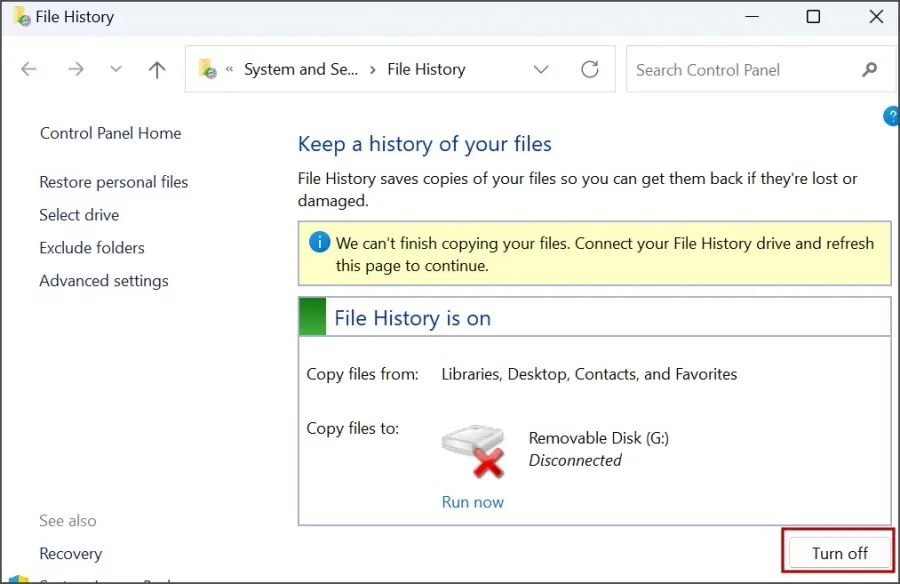 Metoda 9: Vypněte historii souborů