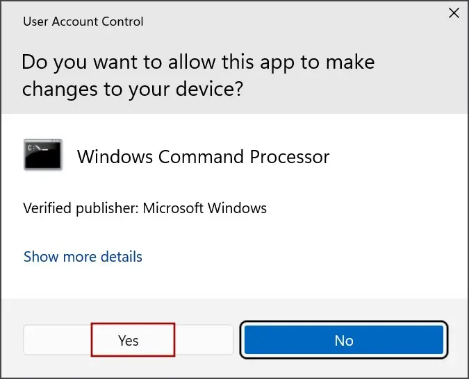 Krok 3: Na obrazovce se objeví okno s výzvou Řízení uživatelských účtů a musíte kliknout na tlačítko Ano.