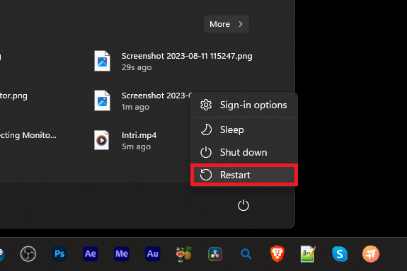 Restartujte počítač: Pomocí nabídky Start vyhledejte možnost restartování.