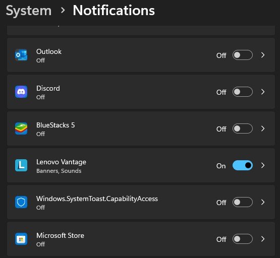 Nakonec se vraťte do nastavení systému a klikněte naOznámení. Příliš mnoho oznámení nebo někteří odesílatelé třetích stran mohou způsobit, že váš hlavní panel zamrzne a nebude fungovat správně. Ujistěte se, že povolíte pouze těm aplikacím, aby vám zasílaly oznámení, která chcete vidět ve vašem systému.