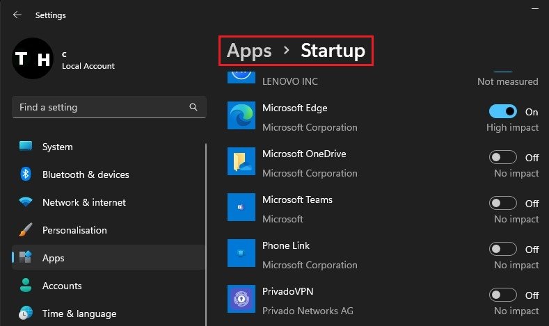 Dále otevřete nastavení systému Windows. VAplikacepřejděte do sekceSpuštěnítab. Zde se ujistěte, že zakážete spouštění většiny aplikací při spouštění systému. Ponechejte povolené pouze aplikace, které denně používáte. Tím se sníží počet současně spuštěných aplikací, což může zabránit problémům se systémem Windows, jako je například nereagující hlavní panel.