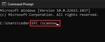 Chcete-li tento problém trvale vyřešit, měli byste použít nástroj pro kontrolu systémových souborů Windows, abyste se ujistili, že vaše systémové soubory jsou úplné a nepoškozené. Vyhledejte CMD ve vyhledávání v nabídce Start a otevřete svůjPříkazový řádekjako správce. V tomto okně použijte příkazSFC /skenovata stiskněte enter.