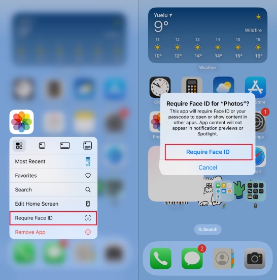 Přímý způsob, jak uzamknout fotografie na vašem iPhone, je zamknout aplikaci Fotky. Zamykání aplikací je nová funkce na iPhonu, která brání někomu jinému dostat se do aplikace. Po uzamčení aplikace Fotky na iPhonu je nutné otevřít aplikaci Fotky pomocí Face ID, Touch ID nebo přístupového kódu. Ale tyto fotografie jsou uzamčeny pouze na iPhone, nikoli mezi platformami.