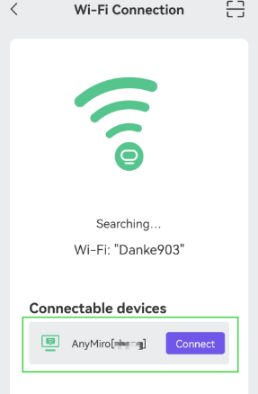 Krok 4.Otevřete aplikaci AnyMiro a klepnutím na připojení WiFi prohledejte počítač.