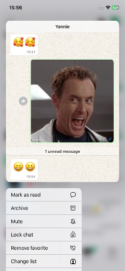 Uživatelé iPhone mohou dlouhým stisknutím konverzace v seznamu chatu WhatsApp zobrazit náhled obsahu zprávy pomocí funkce hmatového dotyku. Při této metodě nebude vaše akce rozpoznána jako přečtená systémem, takže je pohodlná a diskrétní.
